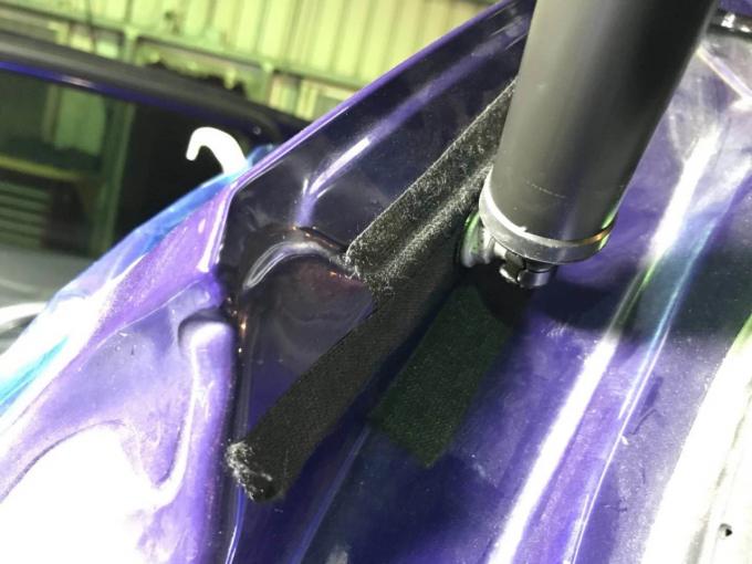 Lepaskan braket atas kanan dan penopang mobil asli dan pasang kurung dan penopang kami.
